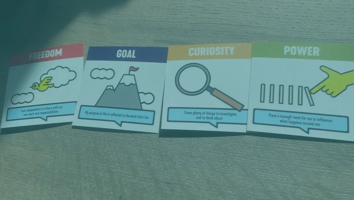 Each person organizes the cards in descending order, from what’s most important to them to what’s least important. It’s good to read out the top and bottom 3 motivators to the group, so that each person in the team can understand what motivates the others, and which things aren’t a motivator for them.